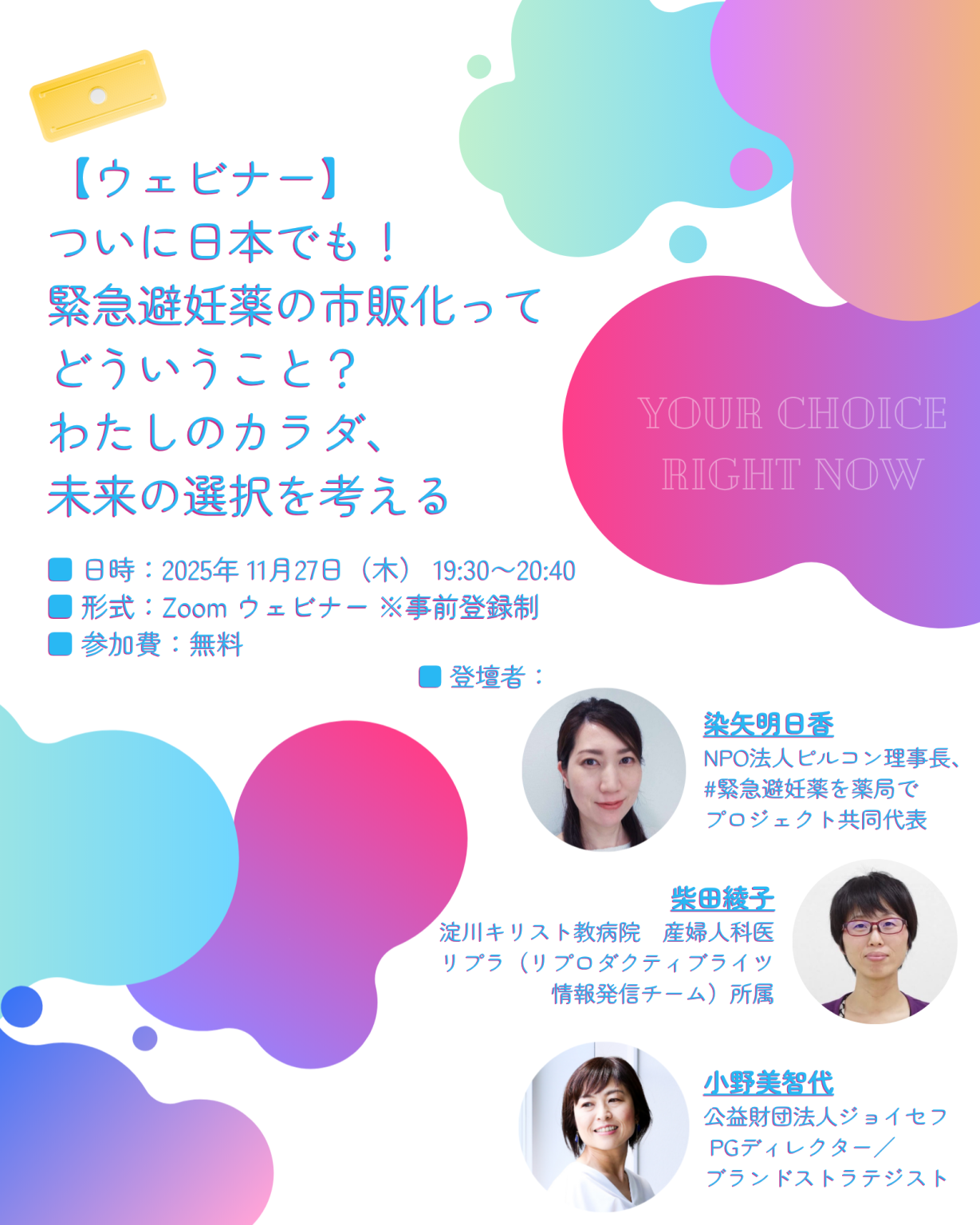 「緊急避妊薬の市販化とこれからの性の選択」をテーマにしたオンラインイベントを開催します。